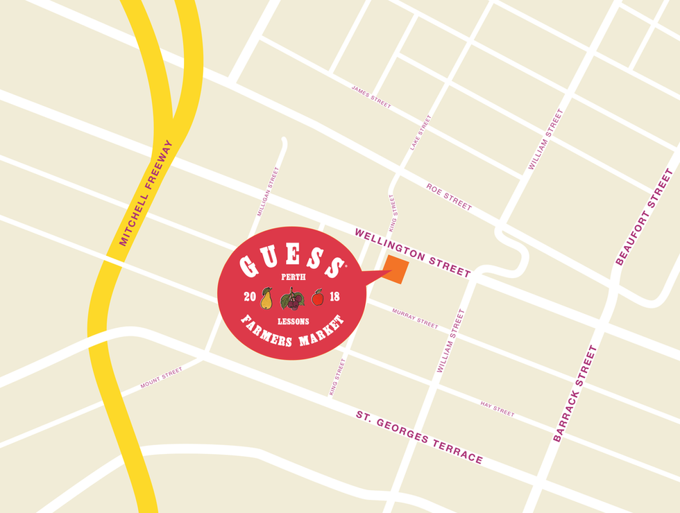 This Guess? collection was bright, multicolored, and inspired by the vibrant palette of a Southern California farmers market. Created in collaboration with Sean Wotherspoon, prominent vintage collector and founder of Round Two Vintage, the launch was centered around the Guess Farmers Market—a two-day event in Downtown Los Angeles featuring vendors, activities, and live music. I developed the art direction and led design for the campaign, which extended to 12 international pop-ups and an e-commerce launch. The visual identity spanned physical and digital touchpoints, including event signage, outdoor advertising, social content, and web assets—creating a cohesive brand experience that seamlessly connected in-person energy with an online presence.
